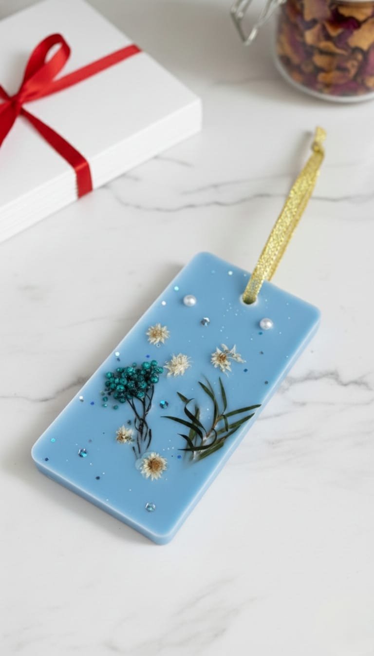 Transport your senses to a serene shoreline with the Pacific Pearl Sachet. This artisanal wax tablet captures the tranquil beauty of the ocean, featuring a deep cerulean base adorned with delicate dried botanicals and shimmering pearl accents. It is a functional piece of art designed to bring a breath of fresh, coastal air to your home.