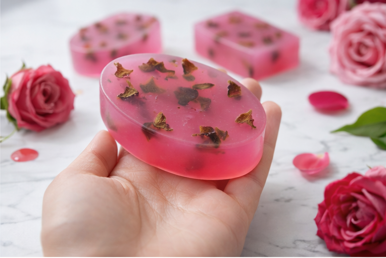 A delicate pink bar infused with real rose petals, designed to gently cleanse while wrapping your skin in a soft, romantic floral fragrance. Leaves your skin feeling smooth, refreshed, and beautifully pampered.