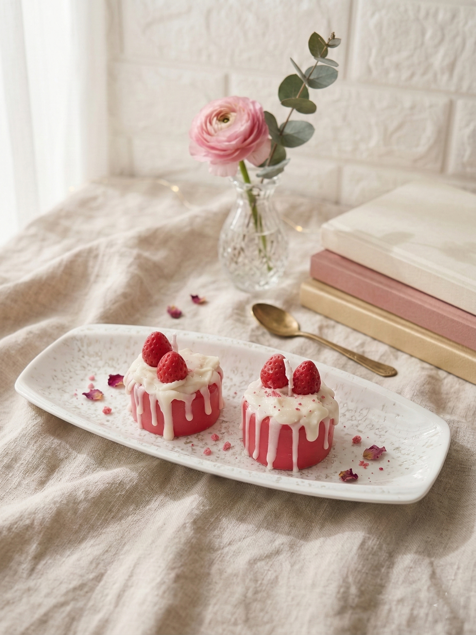 Indulge in a “guilt-free” treat that captures the essence of a gourmet patisserie. The Strawberry Drip Delight is a stunning fusion of sculptural realism and home fragrance, featuring plump, hand-detailed strawberries nestled atop a velvety pink base. Crowned with a cascading “cream” drip, it is designed to be the sweetest centerpiece of your aesthetic decor.